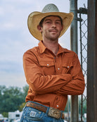 This shirt is made for life under the Texas sun and the moon. Crafted from 97% premium Mexican cotton, with just a touch of our Santa Rita spandex, it’s built to move with you—whether you’re raising your arms in celebration or wrangling a high ball.